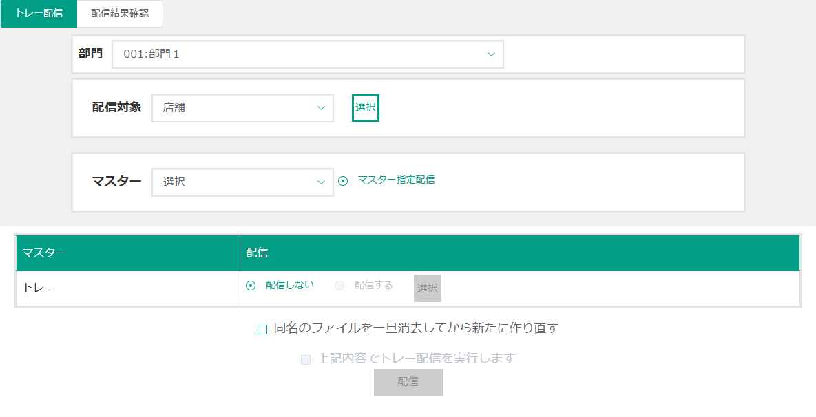 設定した内容でマスター配信を開始します。 ※配信対象が選択されていない場合や、「配信しない」が選択されている場合、実行確認メッセージにチェックを入れていない場合は、「配信」ボタンをクリックできません。 |