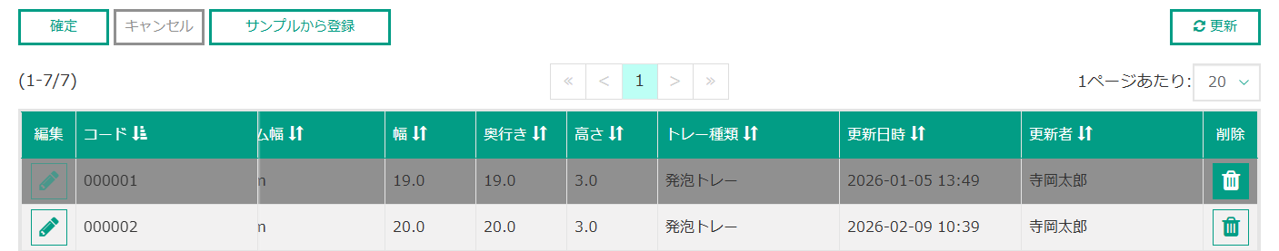 | 削除 | 該当のトレーテンプレートを削除したい場合にクリックしてください。そのトレーテンプレートを削除対象としてマークします。 |