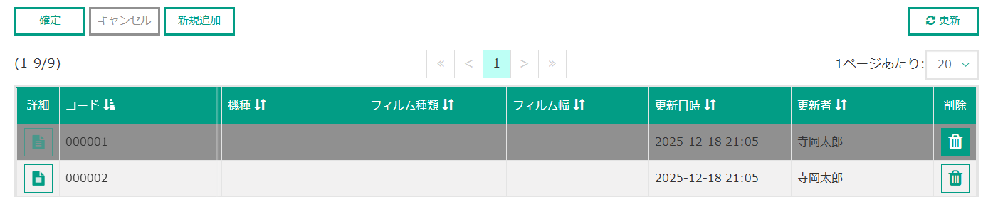 | 更新 | 一覧の表示内容を最新の内容に更新します。 |